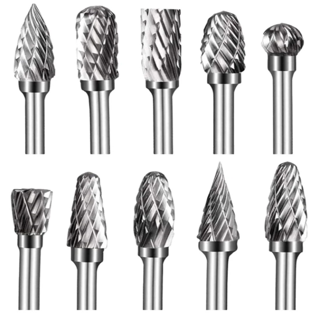 "10pcs Tungsten Carbide Rotary Burr Set 3mm Shank Double Cut"